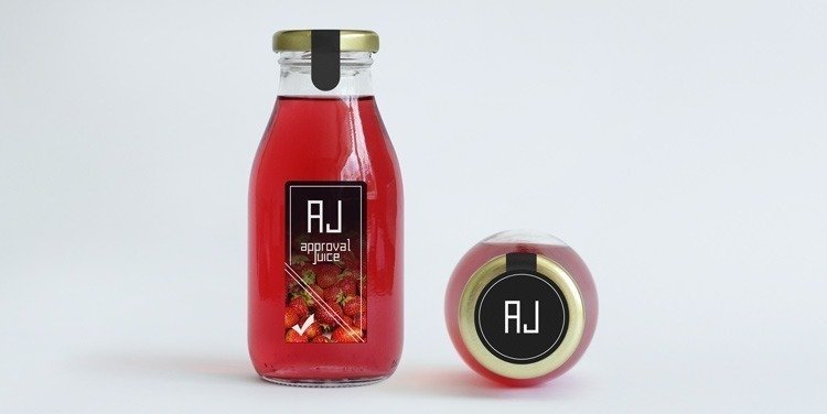 Nesse caso, utilizamos uma fotografia para criar o AJ – Approval Juice: o suco que o cliente toma e aprova de primeira. Sabor morango.
